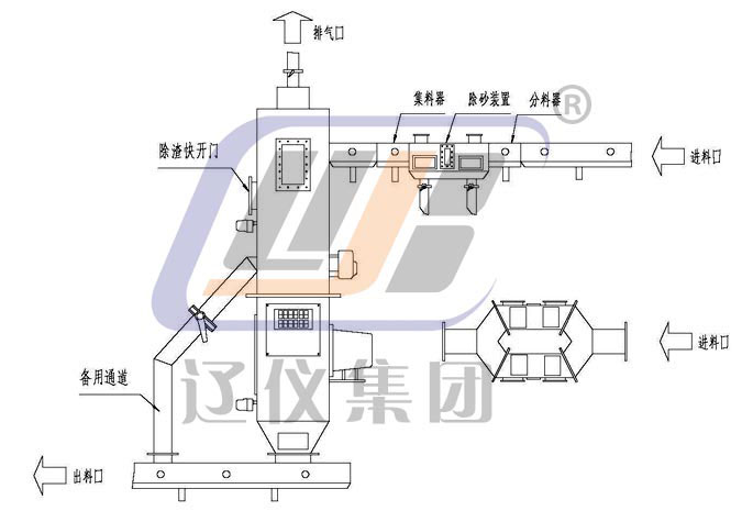 新鮮氧化鋁經(jīng)風(fēng)動(dòng)溜槽進(jìn)入本系統(tǒng)。經(jīng)過分料器將物料分為兩路,分別進(jìn)入除砂裝置,進(jìn)行除砂后匯入集料器進(jìn)入集料箱,在此除渣。氣體由排氣口引出,物料堆積到料位計(jì)時(shí),開關(guān)控制給料器給料,沖板流量計(jì)開始計(jì)量,流量積算儀顯示瞬時(shí)流量、累計(jì)流量。流量大小可根據(jù)實(shí)際生產(chǎn)需要通過流量調(diào)節(jié)器設(shè)定,給料器自動(dòng)調(diào)節(jié)。當(dāng)集料箱無料時(shí),料位開關(guān)控制給料器自動(dòng)關(guān)閉。該過程消除了高壓風(fēng)對沖板流量計(jì)的影響。物料經(jīng)沖板流量計(jì)的計(jì)量后進(jìn)入下溜槽,直到凈化系統(tǒng)。當(dāng)下溜槽發(fā)生堵料堆積到下料位計(jì)時(shí),料位開關(guān)控制給料器關(guān)閉,避免下溜槽物料越堆越多,保持溜槽順暢,使生產(chǎn)有效均衡進(jìn)行。