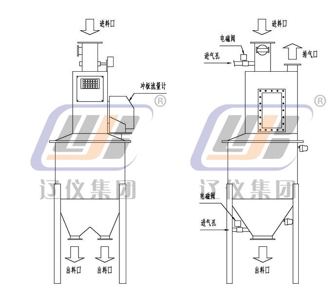 4、本系統(tǒng)為防止物料長時間沉積造成堵塞,在上、下出料口設(shè)有氣體松動裝置,定期松動。